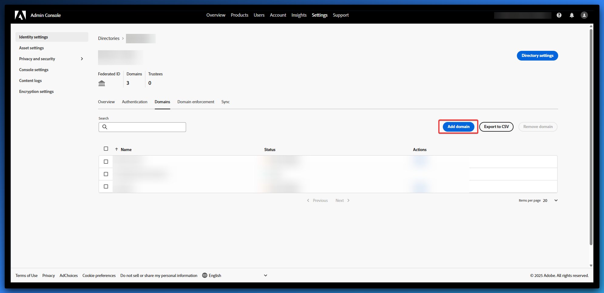 - In your newly created Directory, go to the Domains tab.