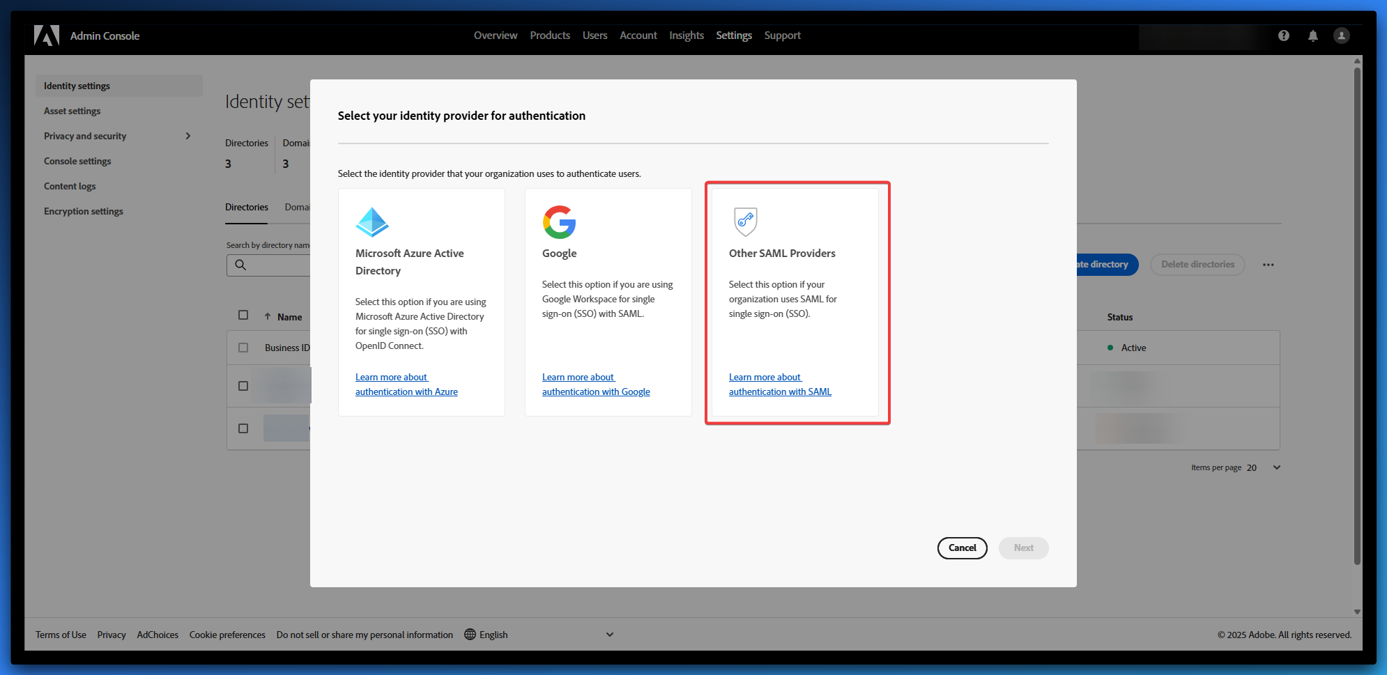- Select Other SAML Providers.