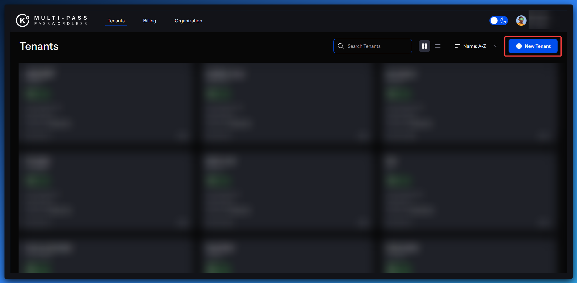 Dashboard Administration - Creating a new Tenant in the Dashboard