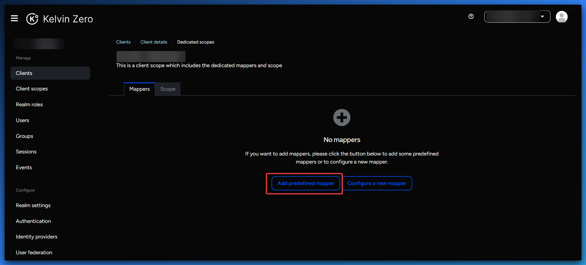 - Go to the Client Scopes Tab and select the first scope in the list.