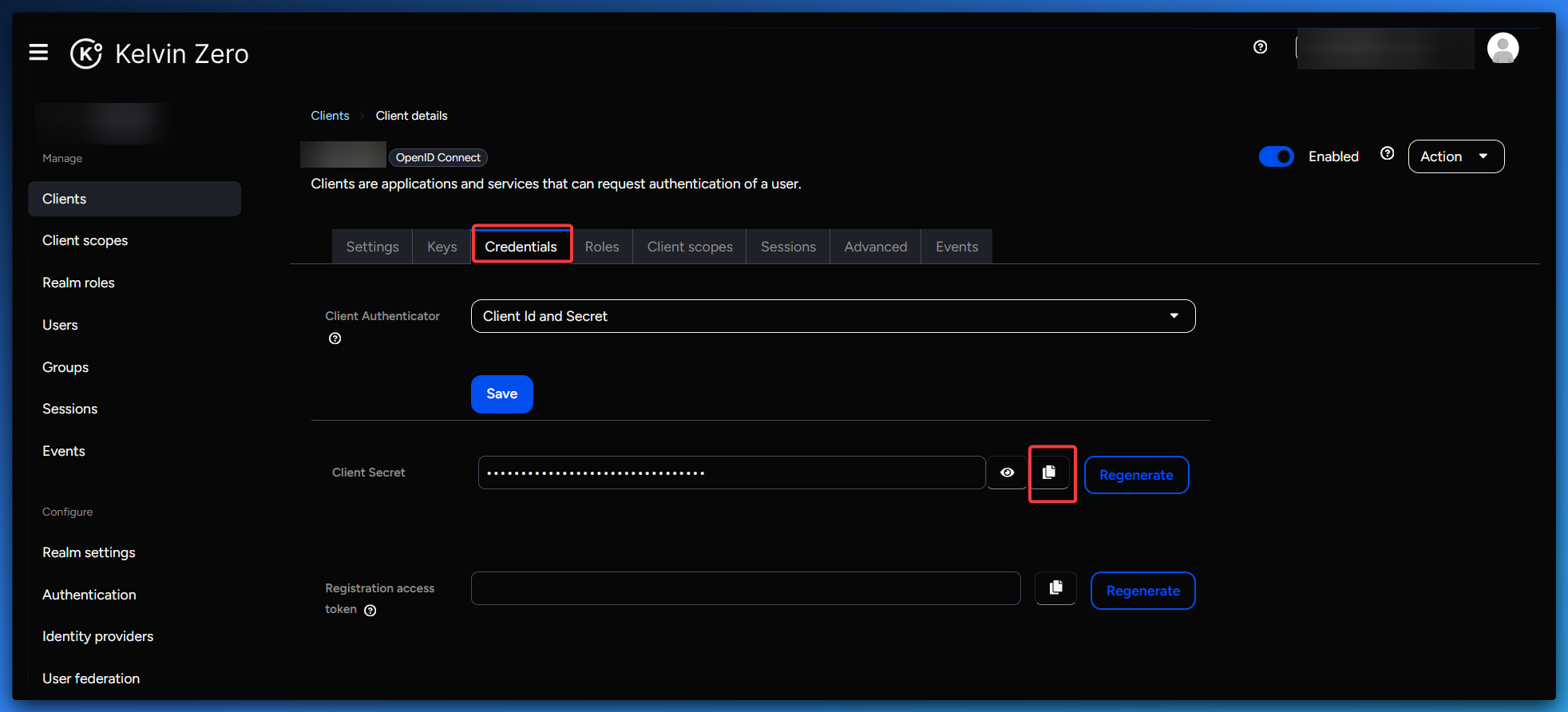 - Go to the Credentials Tab and copy the Secret Key (needed in Step 2).
