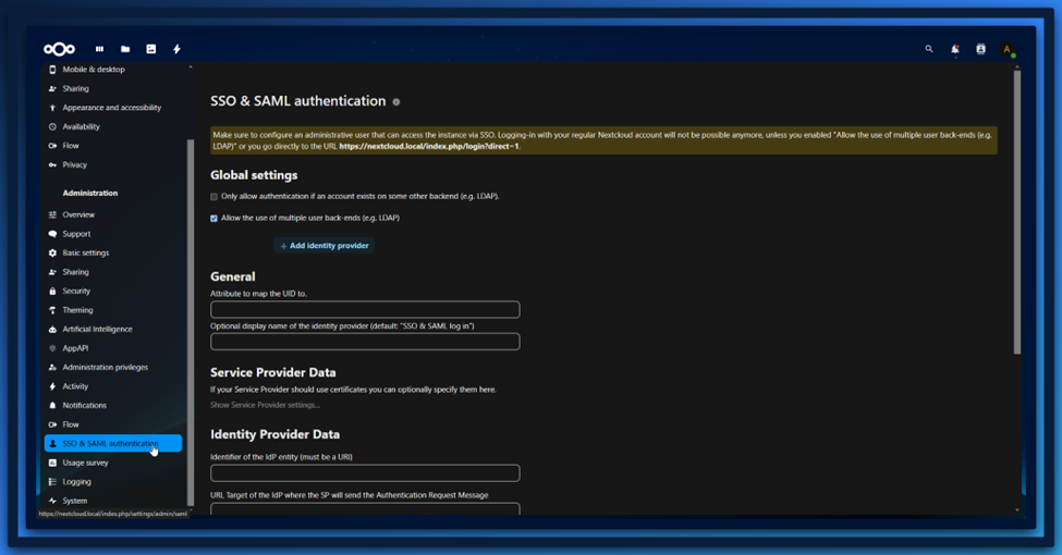 - This step ensures that Nextcloud properly communicates with the identity provider (IdP) for authentication.