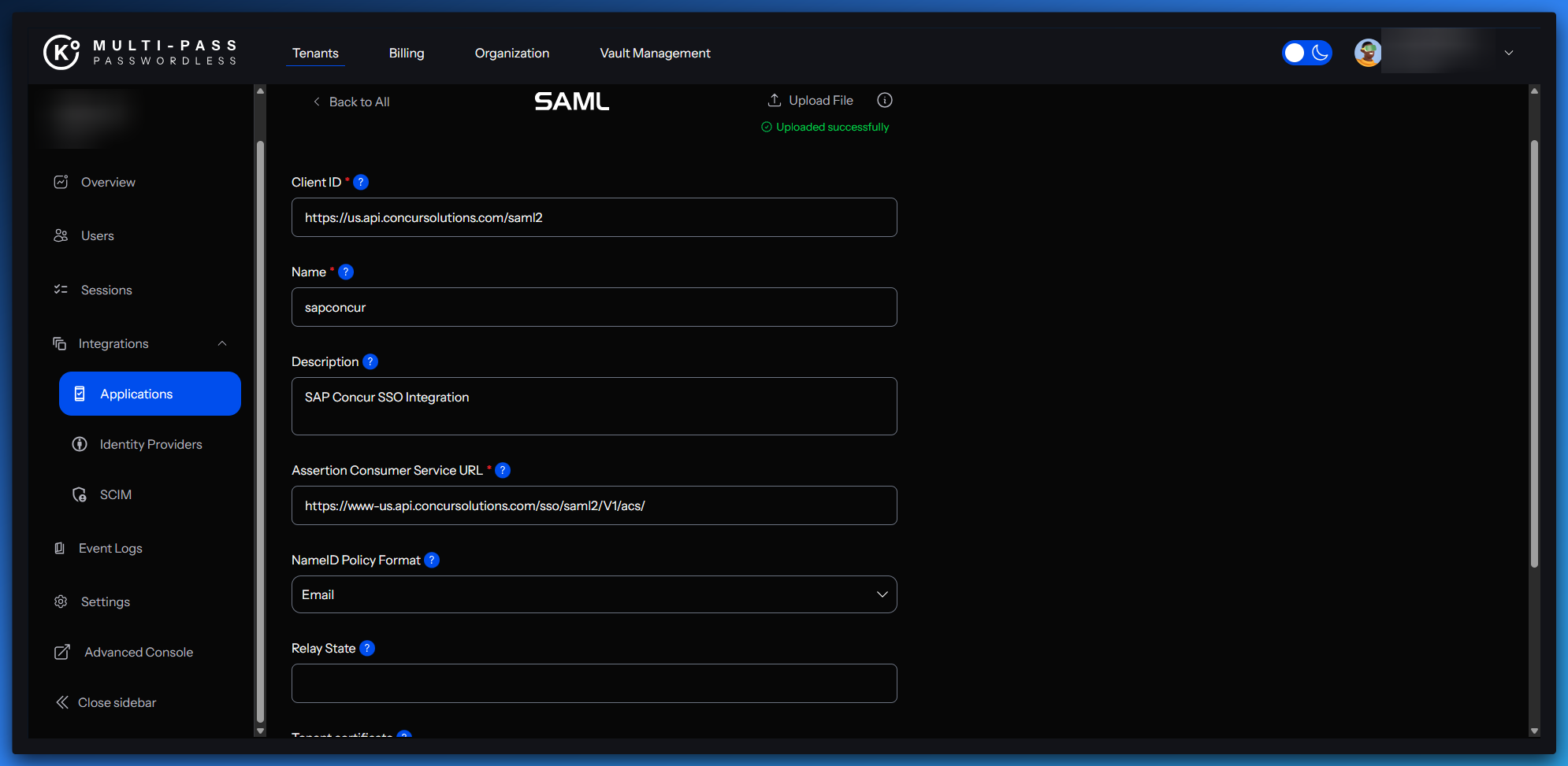 SAP Concur - SSO Configuration