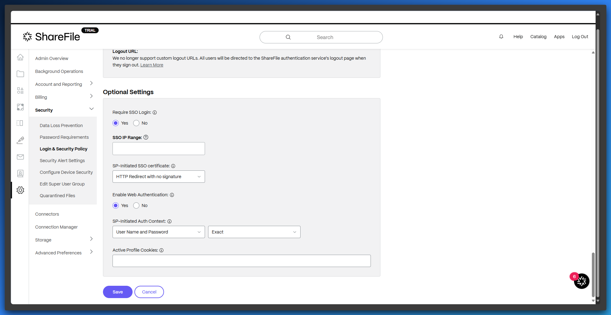 - Navigate to Settings > Admin Settings > Security > Login & Security Policy