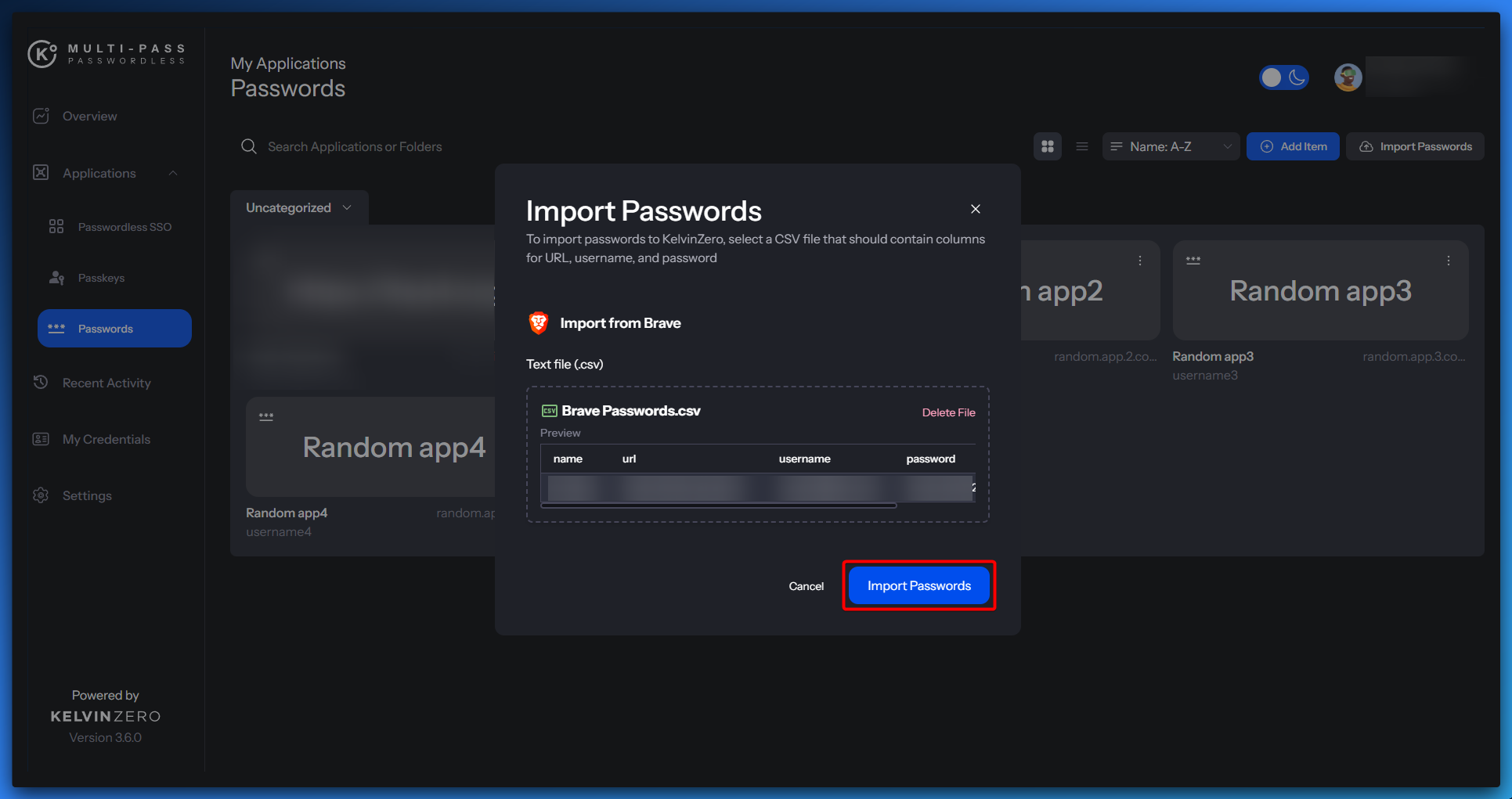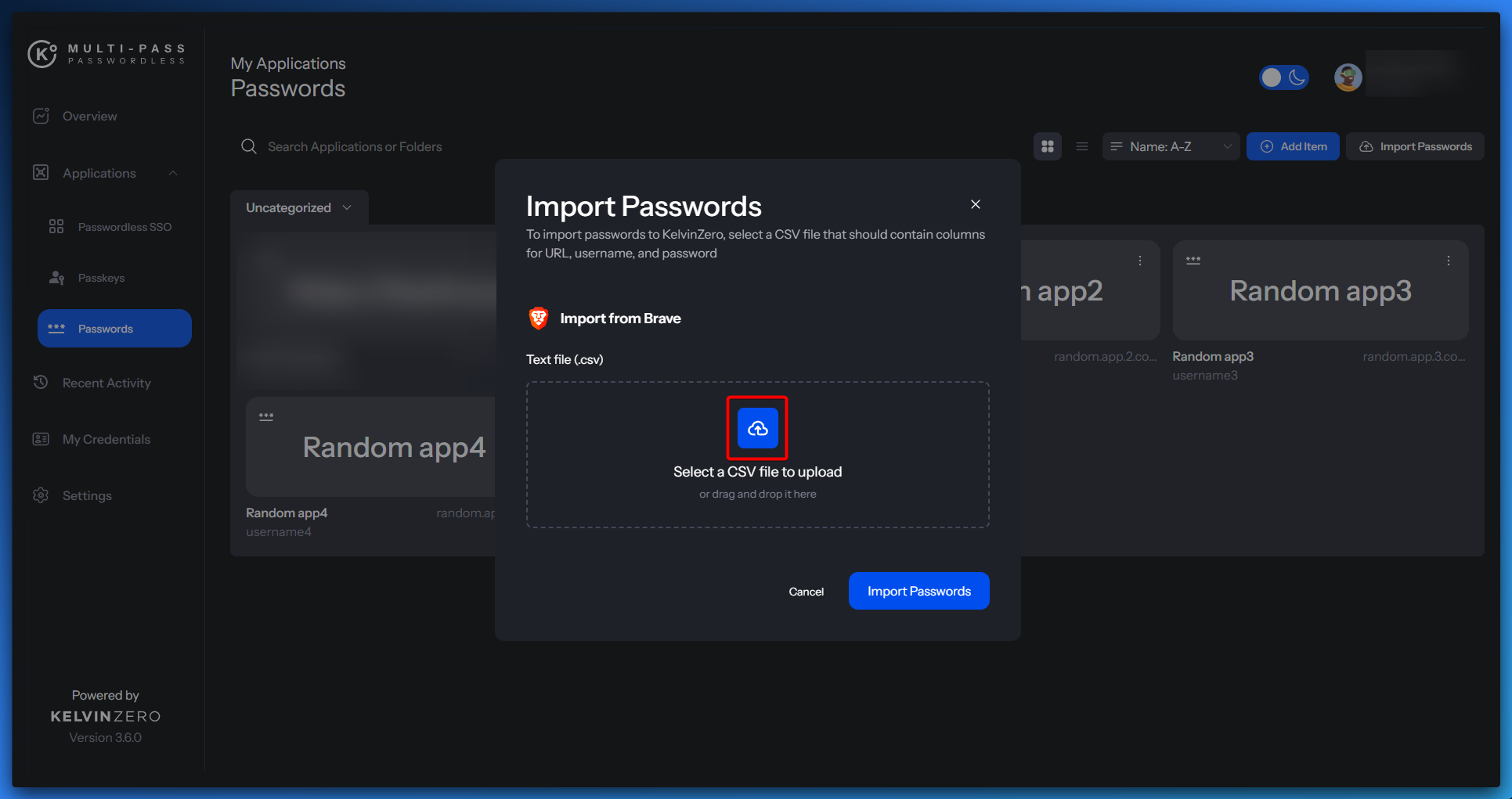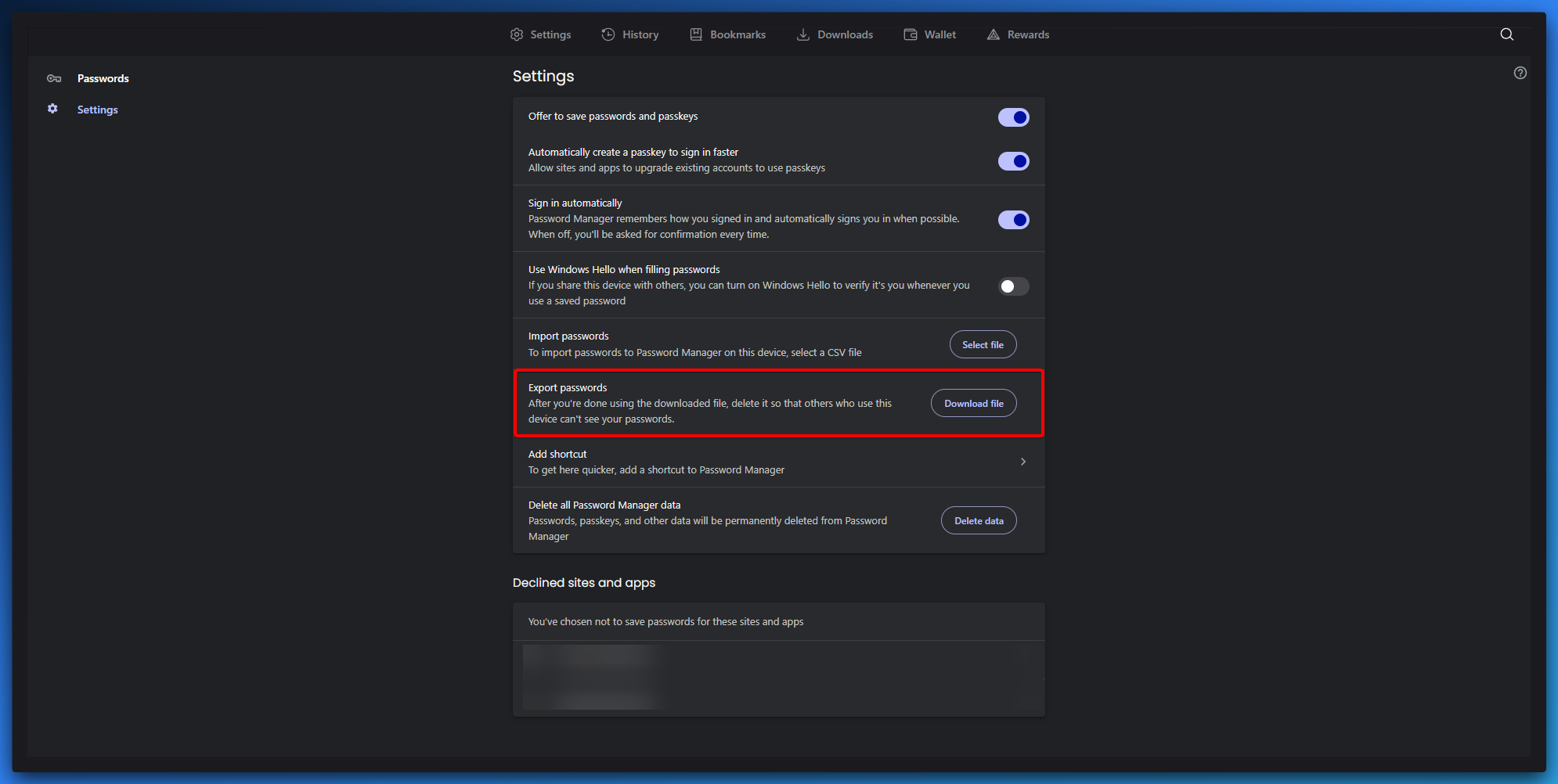 - Brave will generate a .csvfile (e.g.,BravePasswords.csv).