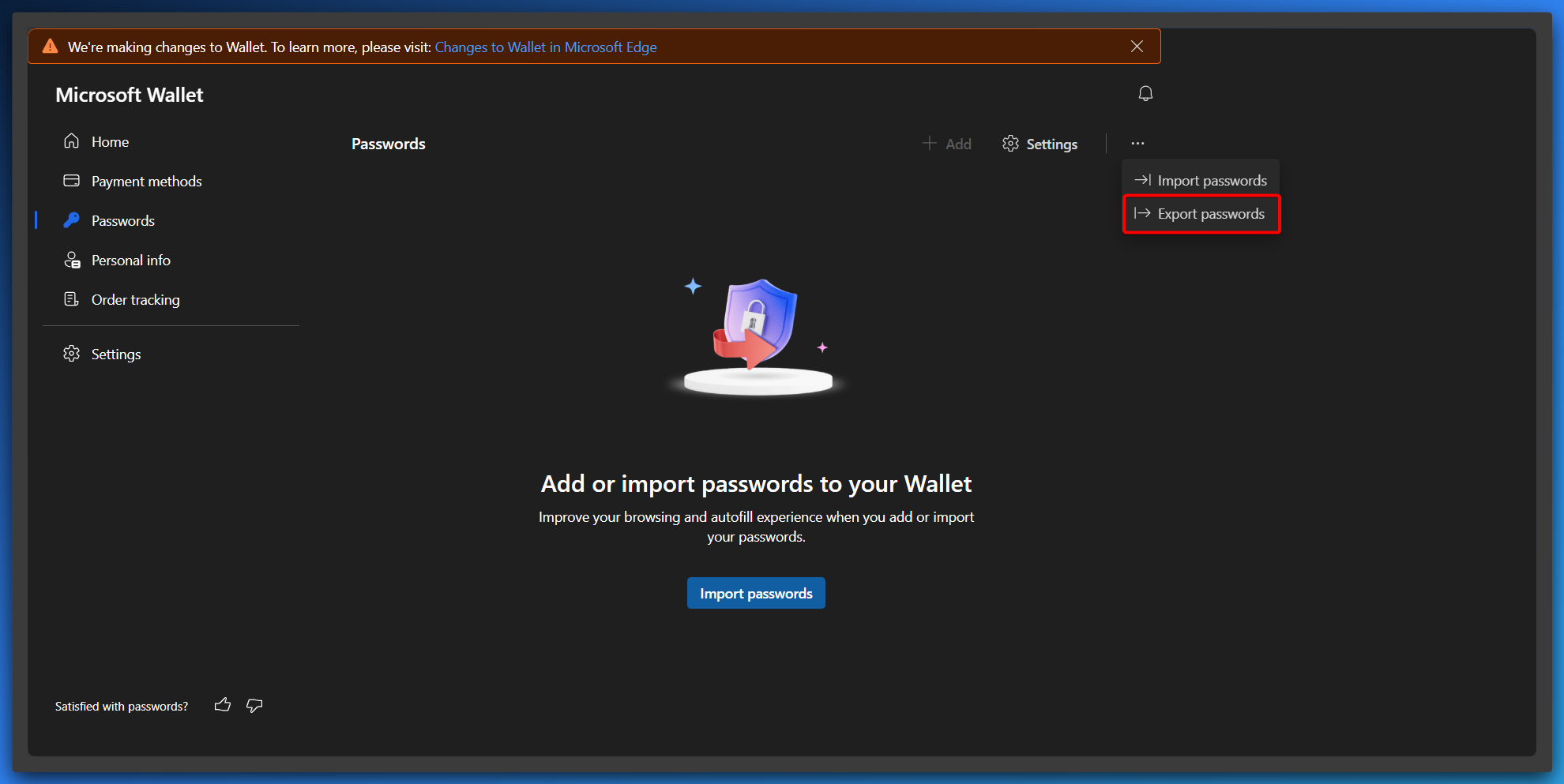 - You can also do it manually by exporting the .csv file from the password manager options.