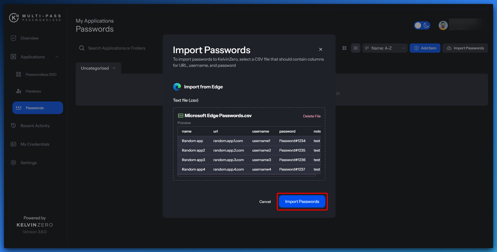 - Edge will generate a .csv file (e.g., Passwords.csv).