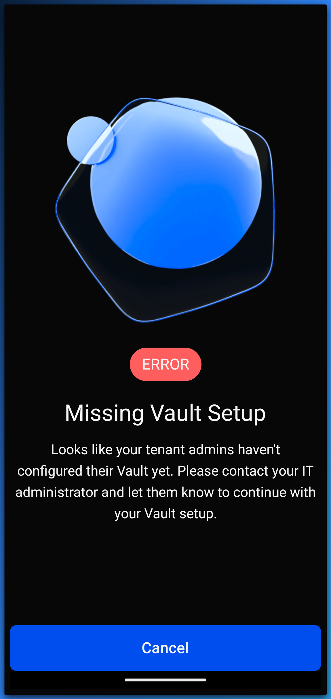 Please contact your IT administrator and let them know to continue with your vault setup.